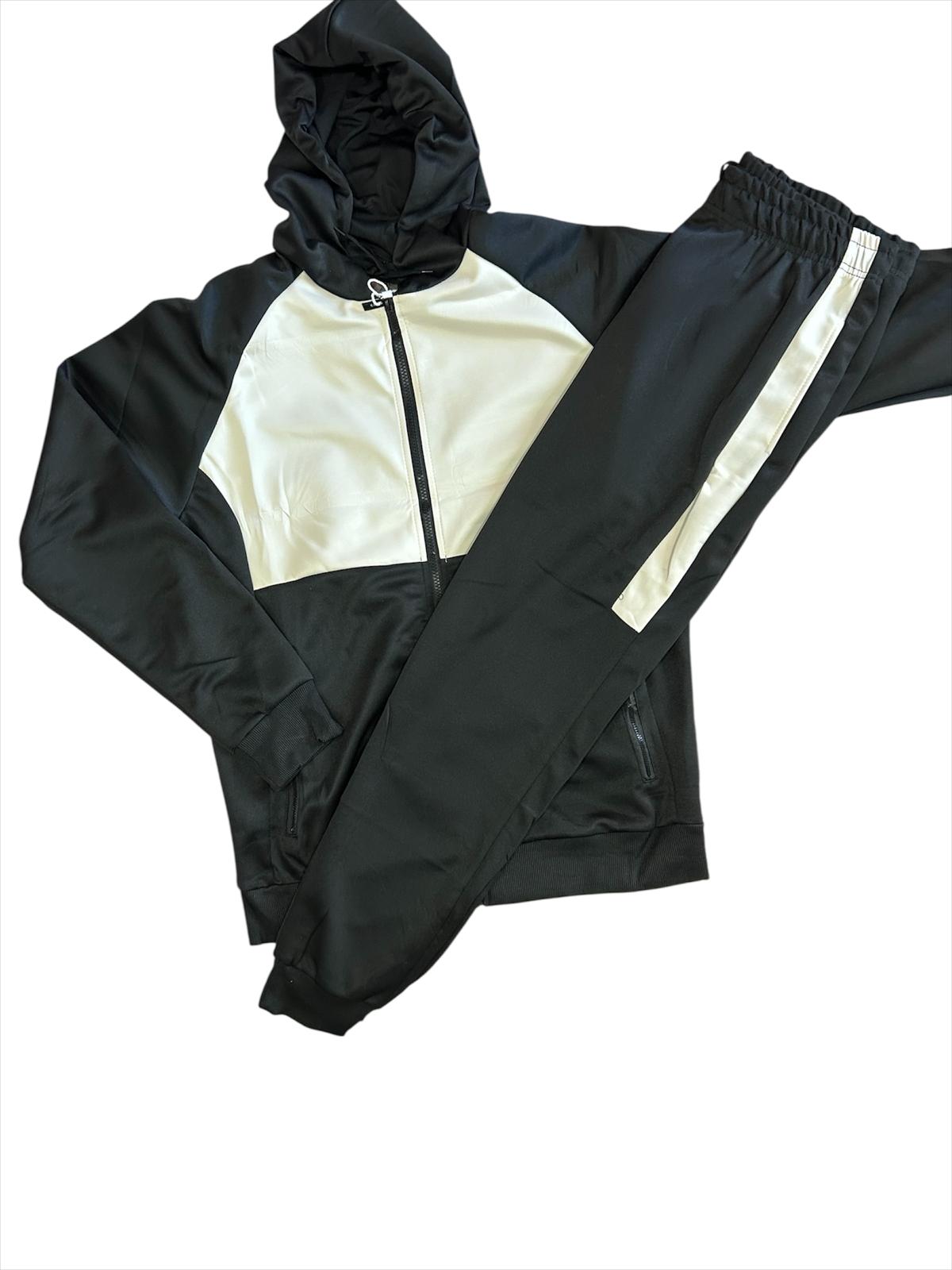 Chándal urbano bicolor – estilo y comodidad en cada paso Este conjunto de sudadera con capucha y pantalón Jagger combina el negro clásico con un toque blanco moderno. Perfecto para entrenar, salir o relajarte con estilo.